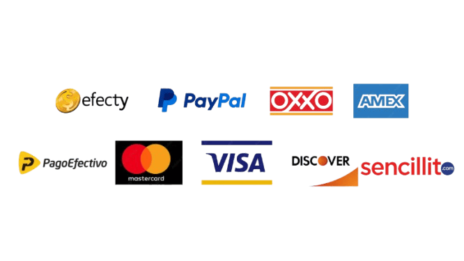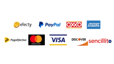 Múltiples Formas de pago (PayPal, Tarjeta de Crédito, Pago en efectivo)